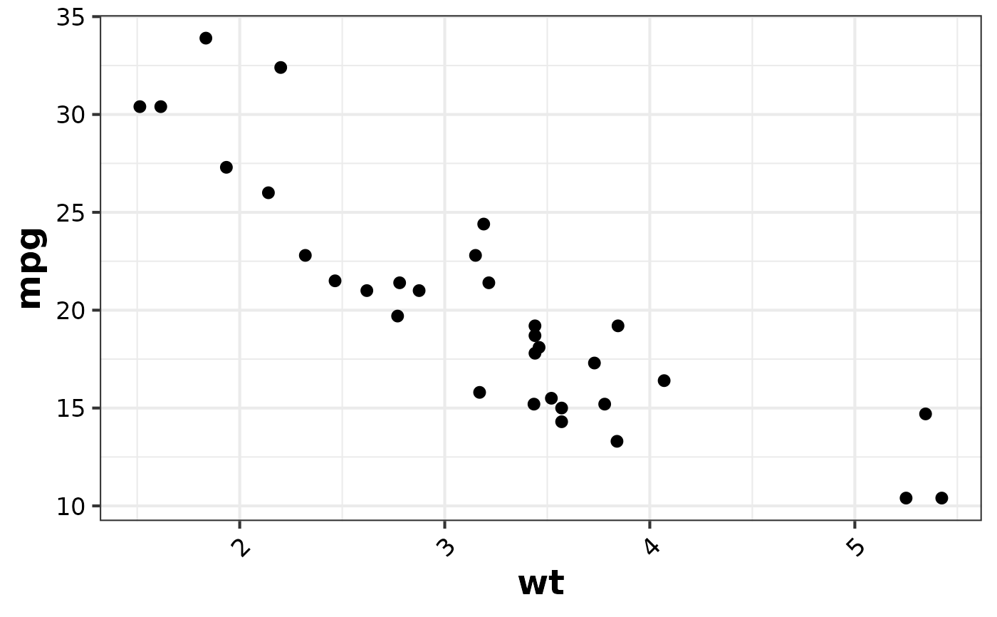ggplot(mtcars, aes(x = wt, y = mpg)) +