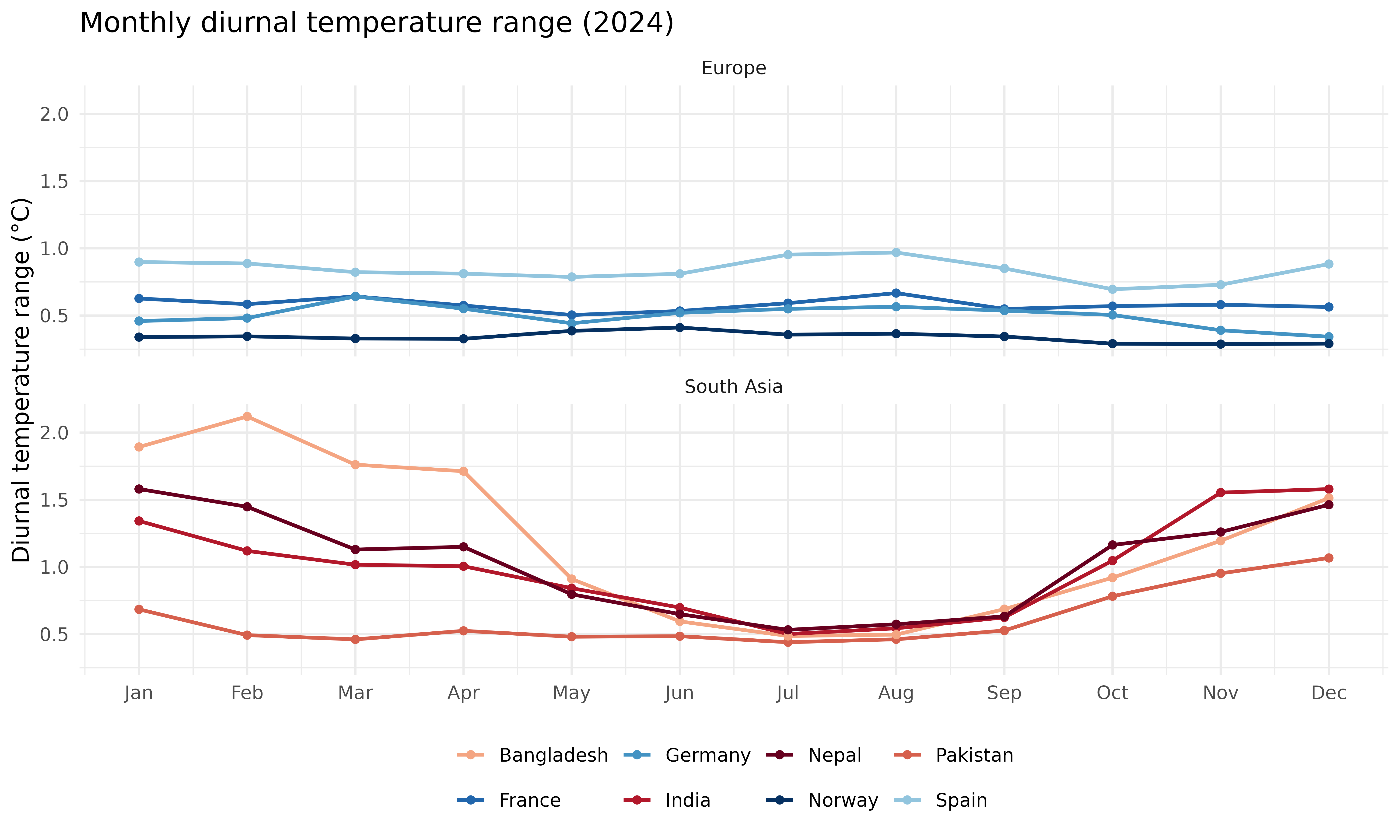 x = NULL, y = "Diurnal temperature range (\u00B0C)",